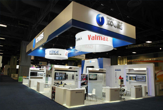 在很大程度上,企業標志就是企業的象征,是企業品牌的形式體現。標志一般由標準圖形、標準色彩、標準字體等三部分組成,無論哪一部分都是以企業性質、產品功能用途、經營理念等為設計依據的。所以,如何將企業標志作為設計元素融入展臺設計是體現企業特性,突出辰臺設計效果的一個關鍵。